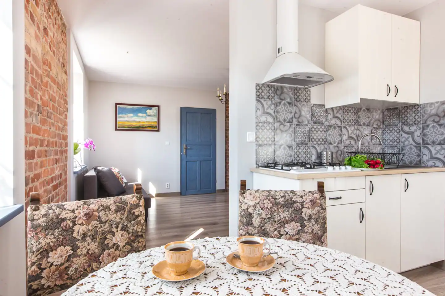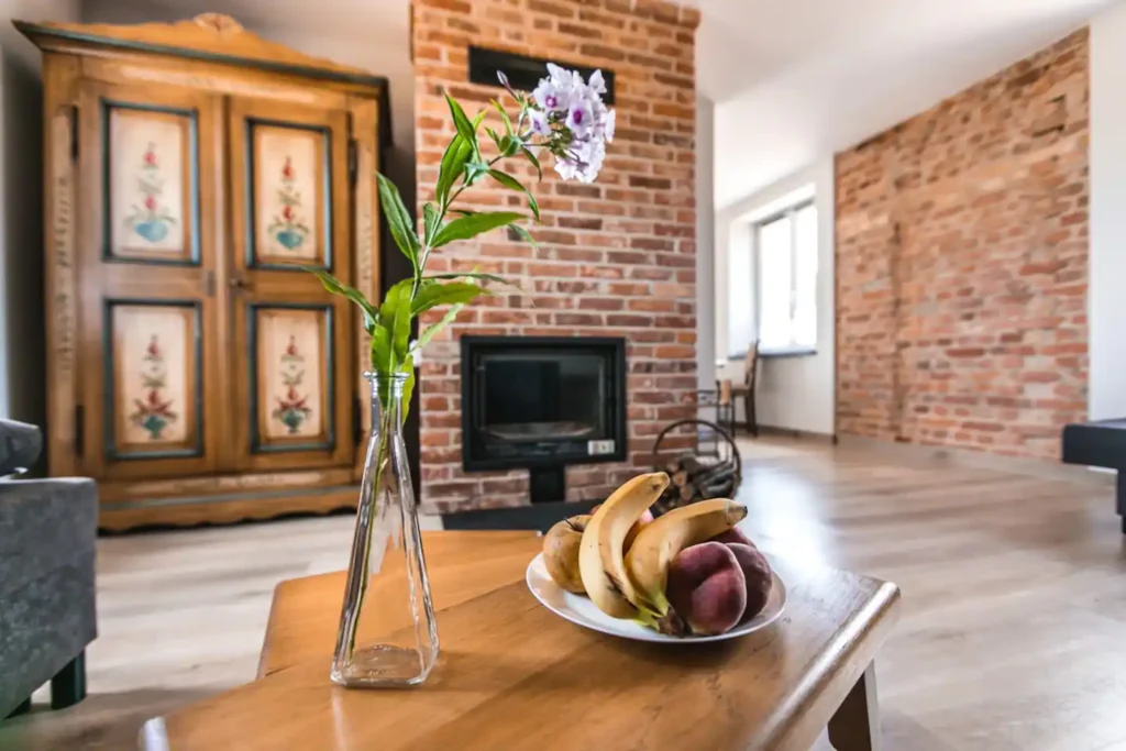 Mieszkanie urządzone jest w bardzo przytulny sposób, co zawsze doceniają nasi goście. Połączenie czerwonej cegły z klasycznymi meblami i nutą nowoczesności sprawi, że Wasz wypoczynek będzie niezapomnianym przeżyciem.