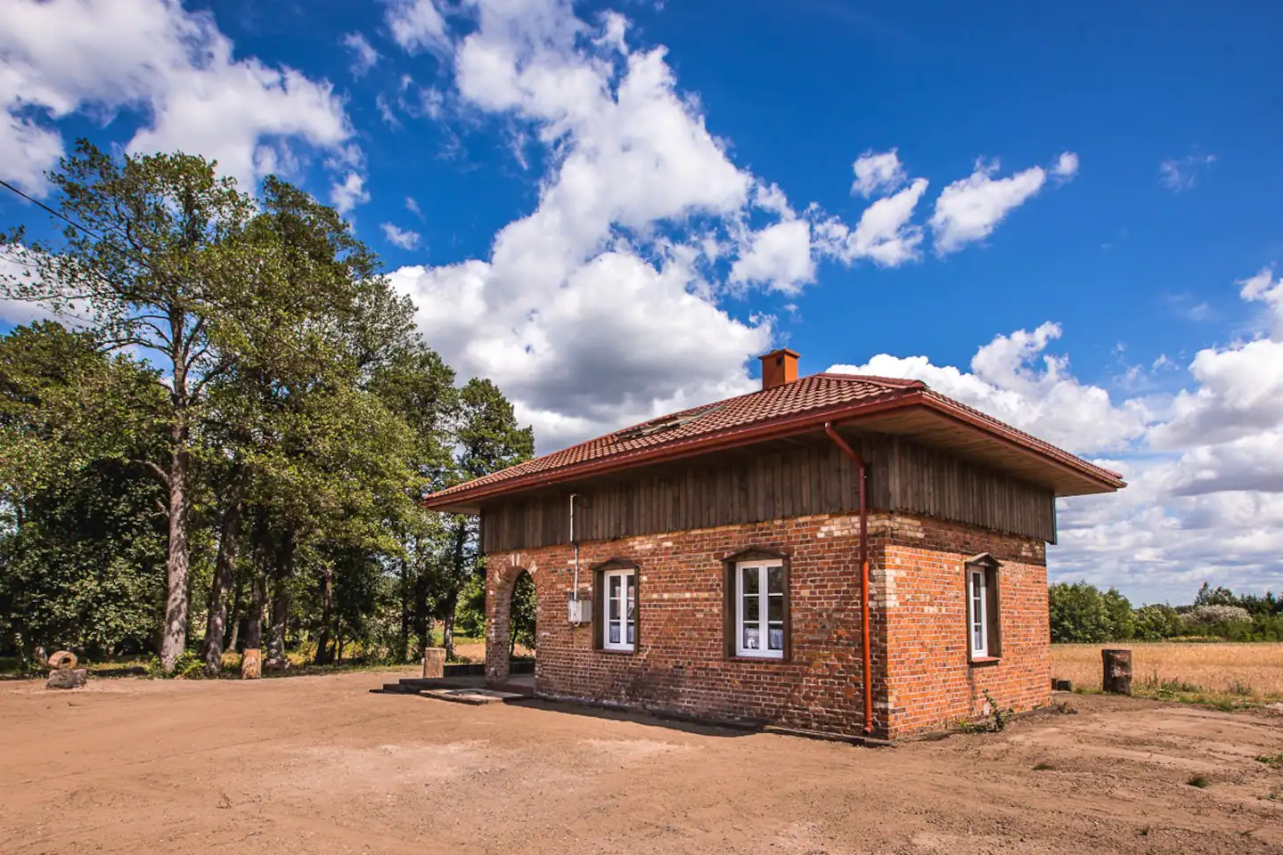 Zapraszamy do wynajęcia urokliwego studia „Folk Art Studio” w odrestaurowanym ponad stuletnim budynku z czerwonej cegły, znanego jako Stara Pompka, położonego na ponad półhektarowej działce. Ten budynek jest jednym z nielicznych pozostałości po carskiej kolei w okolicy. Na zdjęciach można zobaczyć staw, który kiedyś służył jako źródło wody dla parowozów zatrzymujących się na odległej o około 500 metrów stacji – obecnie jest on zarybiony.