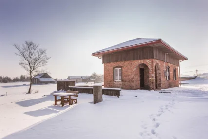 Jeśli szukasz wyjątkowego miejsca na pobyt, Stara Pompka to doskonały wybór. Studio na górze to ponad stuletni budynek z czerwonej cegły, odrestaurowany w czerwcu 2019 roku, który zachował swój oryginalny charakter. Budynek jest położony na ponad półhektarowej działce, w otoczeniu zieleni i spokoju. Jest to jeden z nielicznych reliktów carskiej kolei w okolicy, co nadaje mu niepowtarzalny urok. Na zdjęciach widoczny jest także staw , który był źródłem wody do parowozów zatrzymujących się na odległej o około 500m stacji – aktualnie zarybiony.